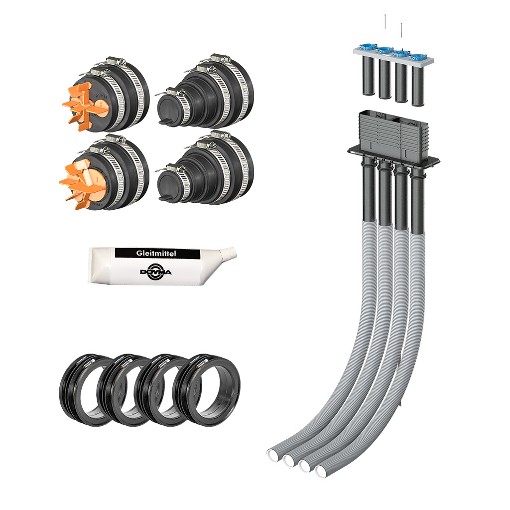 - All Inclusive-Paket bestehend aus einer Quadro-Secura Mehrspartenhauseinführung und dem HKD Entsorgungspaket