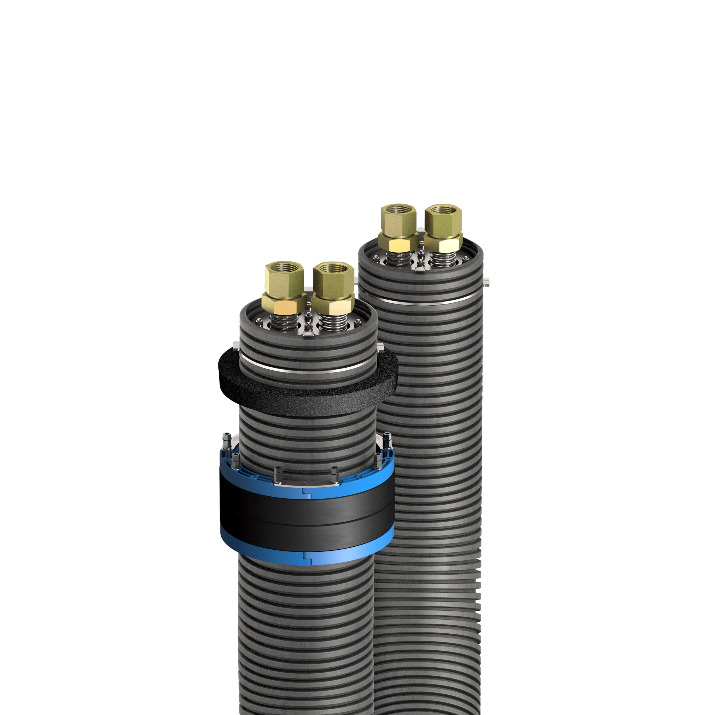 Gebäudeaußenwände für die luft-, gas- und wasserdichte Abdichtung von Rohren und Kabeln bei Luft-Wasser-Wärmepumpen. Geeignet für den Einsatz in bauseitigen Futterrohren oder WU-Betonkernbohrungen mit DN 250. Das System ist anschlussfertig mit EPDM-isolierten Edelstahlwellrohren und Kabelleerrohren ausgestattet. Die geführten Medienleitungen werden durch ein flexibles Mantelrohr DN 200 geschützt. Die Abdichtung der Gebäudeaußenwand erfolgt über den Dichtungseinsatz Curaflex Nova Uno/breit. Es umfasst zwei flexible Edelstahlwellrohre mit einem Außendurchmesser von 32 mm zum Anschluss der Außeneinheit.