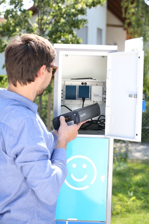 Mit der Akku-Ladestation für E-Bikes der LEW Netzservice GmbH bieten Sie Kunden und Gästen eine schnelle und komfortable Möglichkeit den Akku ihrer Elektroräder und mobile Endgeräte aufzuladen. Jedes der vier Ladefächer bietet dazu nicht nur zwei Schuko-Steckdosen, sondern auch einen USB-Ladeanschluss. Für den nötigen Diebstahlschutz während des Ladevorgangs sorgt ein zusätzliches Münzpfandschloss.