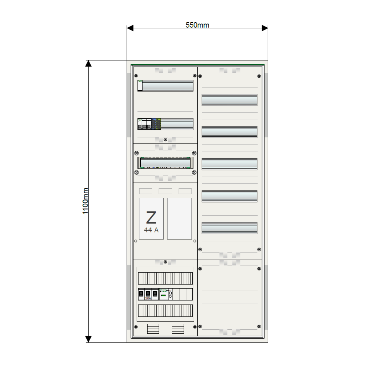 - Verteilerfeld mit 5 Reihen für 60 TE, PE und N -Steckklemmen und APZ-Raum 2 Stück RJ45 Schnittstelle für APZ und RfZ